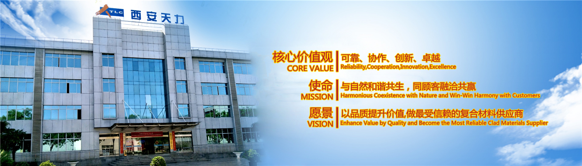 西安天力金屬復(fù)合材料股份有限公司是西北有色金屬研究院(集團(tuán))產(chǎn)業(yè)化上市公司“西部材料”控股的獨(dú)立法人公司,是專業(yè)從事層狀金屬復(fù)合材料研究及生產(chǎn)的高新技術(shù)企業(yè),成立于2003年12月25日,位于西安經(jīng)濟(jì)技術(shù)開發(fā)區(qū)涇渭工業(yè)園,注冊資本10895萬股,擁有生產(chǎn)廠房23000余平米,各類生產(chǎn)設(shè)備200余臺(tái)套及兩塊條件優(yōu)越的爆炸復(fù)合場地,形成年產(chǎn)25000噸層狀復(fù)合材料的生產(chǎn)加工能力……
